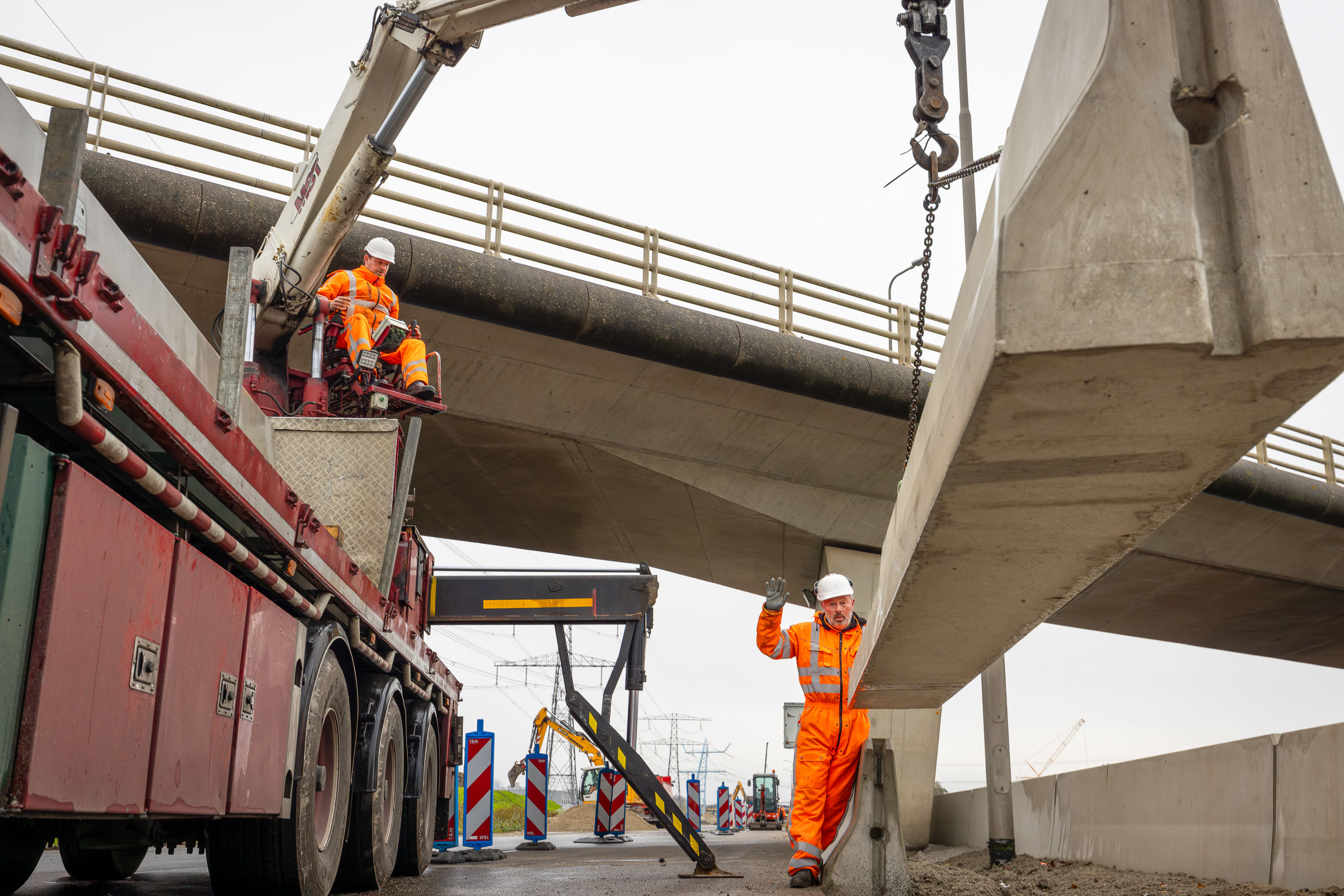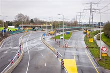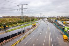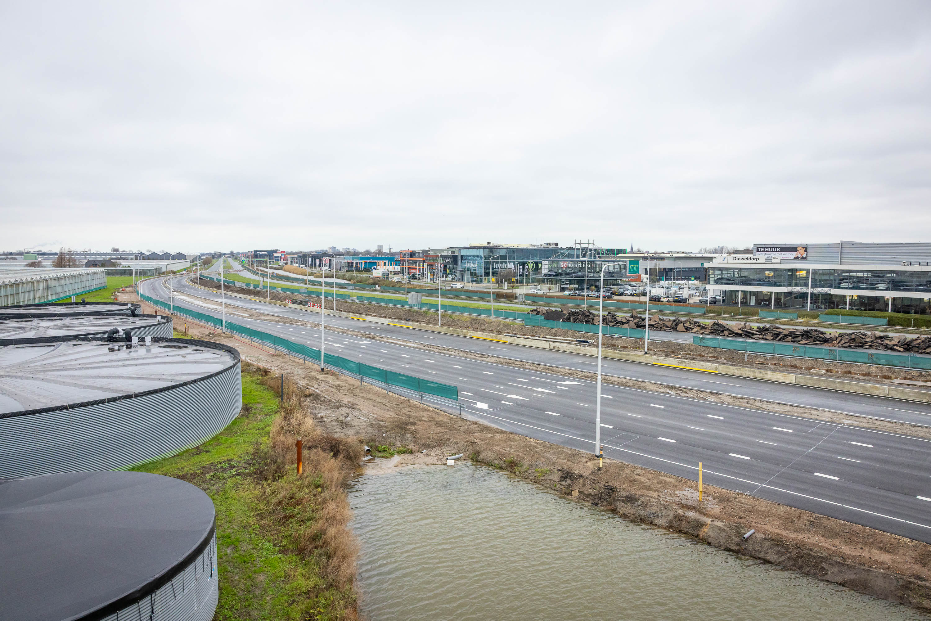 Betonnen barriers verhogen de veiligheid op de bypass waar de ruimte schaars is.