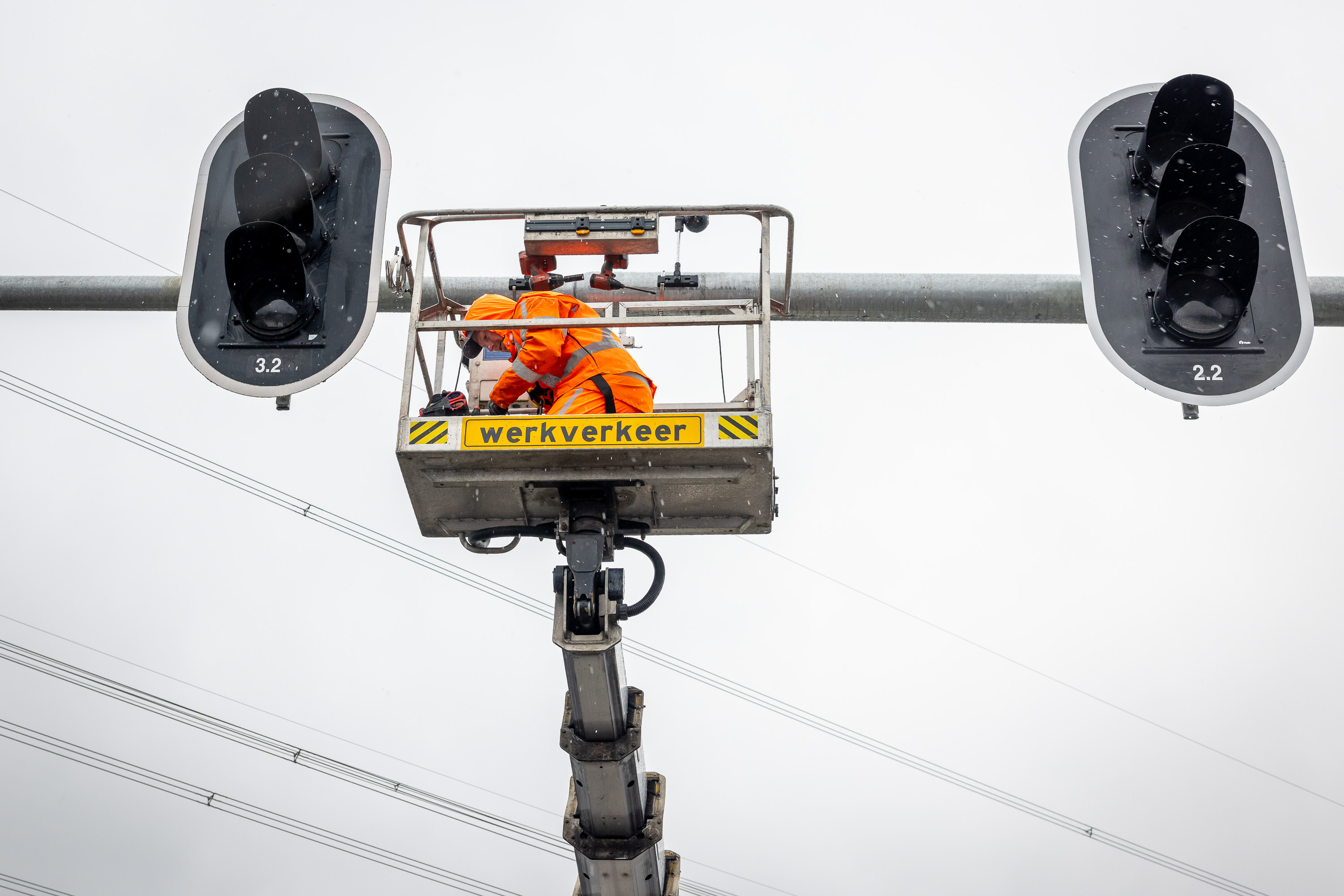 Een verkeersregelinstallatie (VRI) regelt het verkeer op de kruising N211.