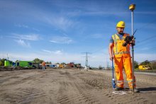 Voordat de bouw start, beoordeelt de landmeter de locatie bij de voormalige verzorgingsplaats en McDonalds.